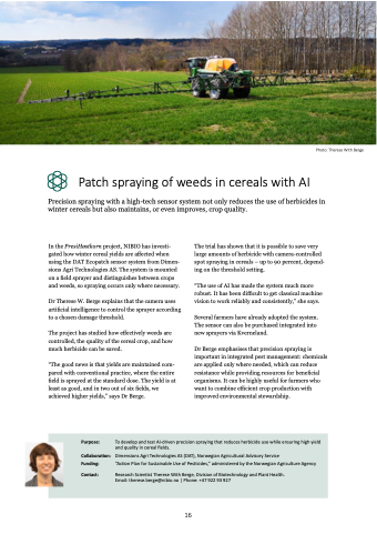 Purpose: Collaboration: Funding: Contact: To develop and test AI-driven precision spraying that reduces herbicide use while ensuring high yield