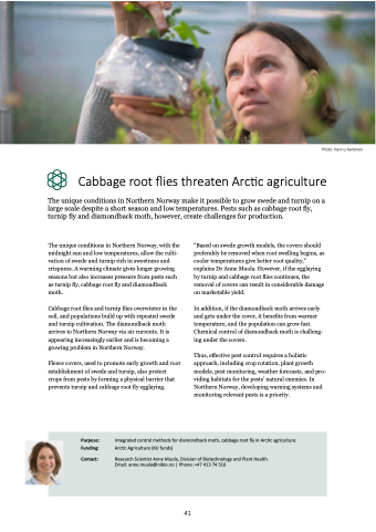 Purpose: Integrated control methods for diamondback moth, cabbage root fly in Arctic agriculture.